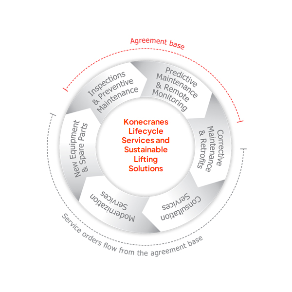 Outsourcing of service creates a win-win situation for both our customers and Konecranes. Konecranes can lower customers’ maintenance costs through increased performance and uptime for the equipment in use. On the other hand, the increased density of the equipment under maintenance contracts enhances the productivity of Konecranes’ service operations.